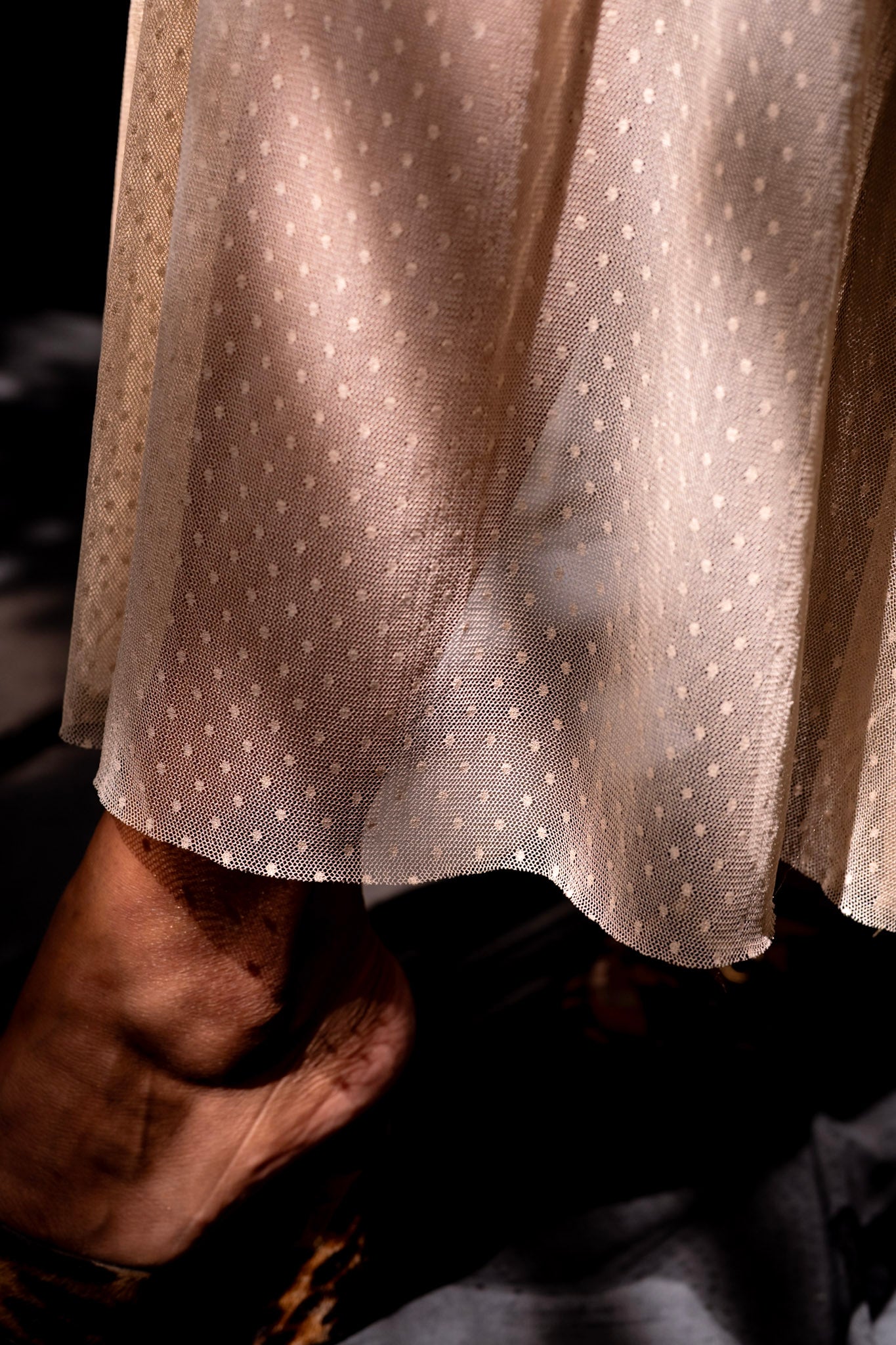 A statement piece that balances boldness and femininity, this sheer tea-length skirt is an incredibly versatile layering piece. Crafted from a soft polka dot net fabric, this tea-length skirt features delicate gathers at the waistband, creating graceful volume and movement with every step. The ½” waistband sits comfortably at the natural waist and fastens with an invisible side zipper and a hook-and-eye closure for a clean, minimal finish.