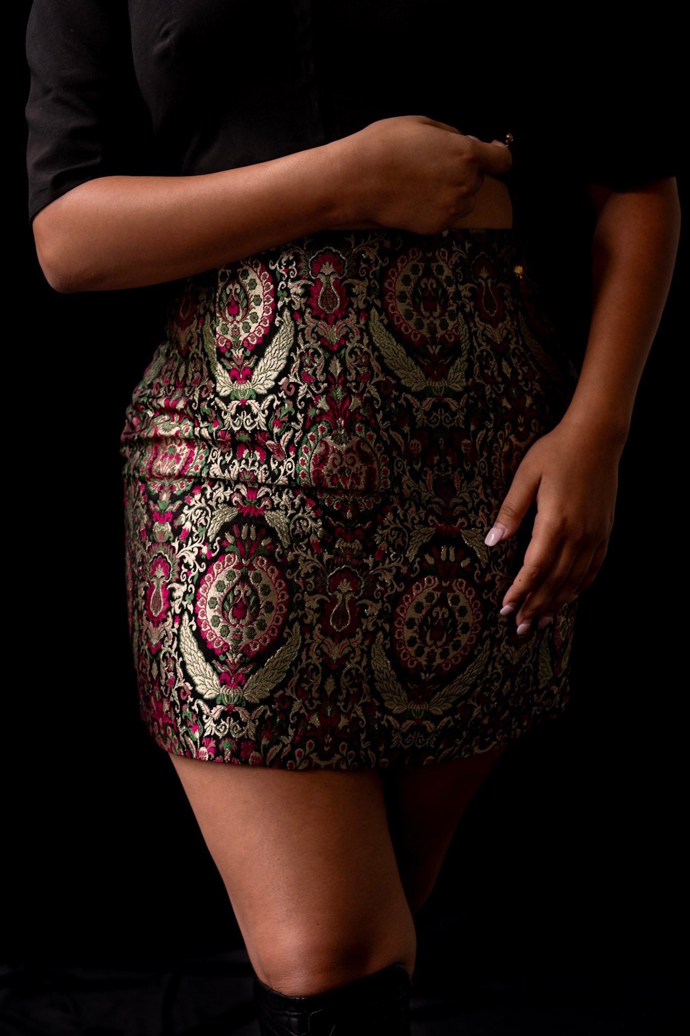 Made from a hand-woven silk brocade, this rich and luminous high-waisted mini skirt is a special statement piece that will elevate your wardrobe for years to come. With a high-rise waist and short skirt length, this limited-edition release is both elegant and sexy, classic and modern.