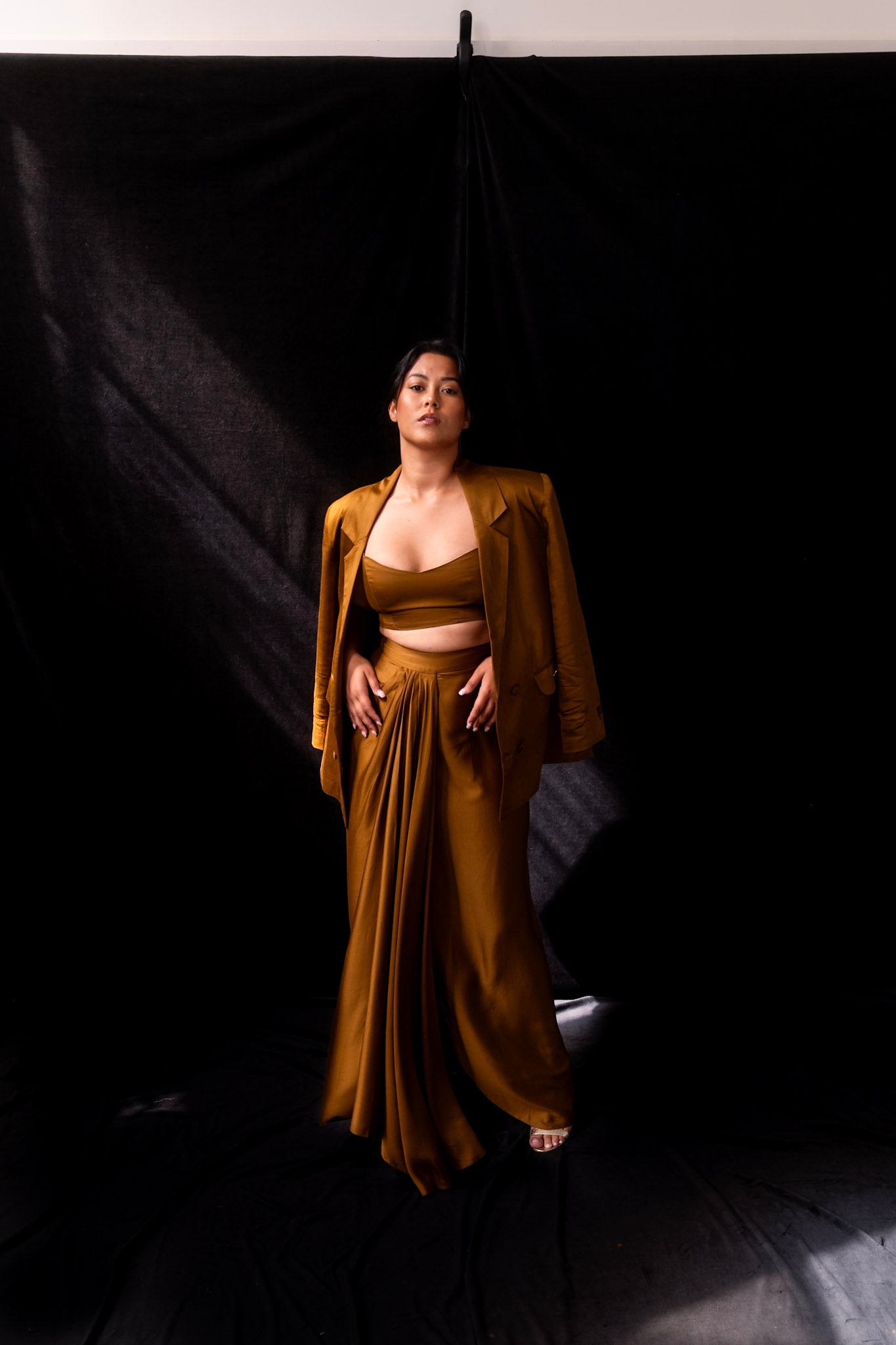 Also pictured: Golden Brown Blazer, Golden Brown Satin Bralette