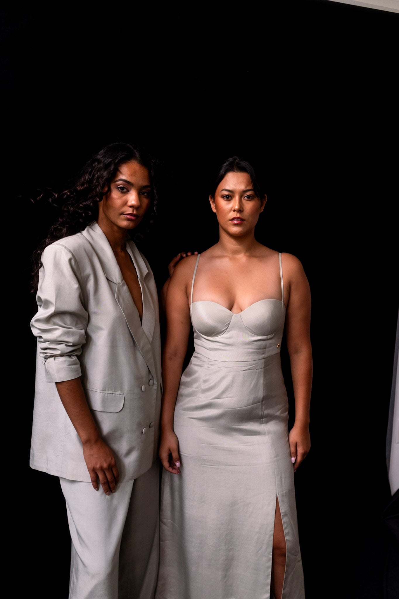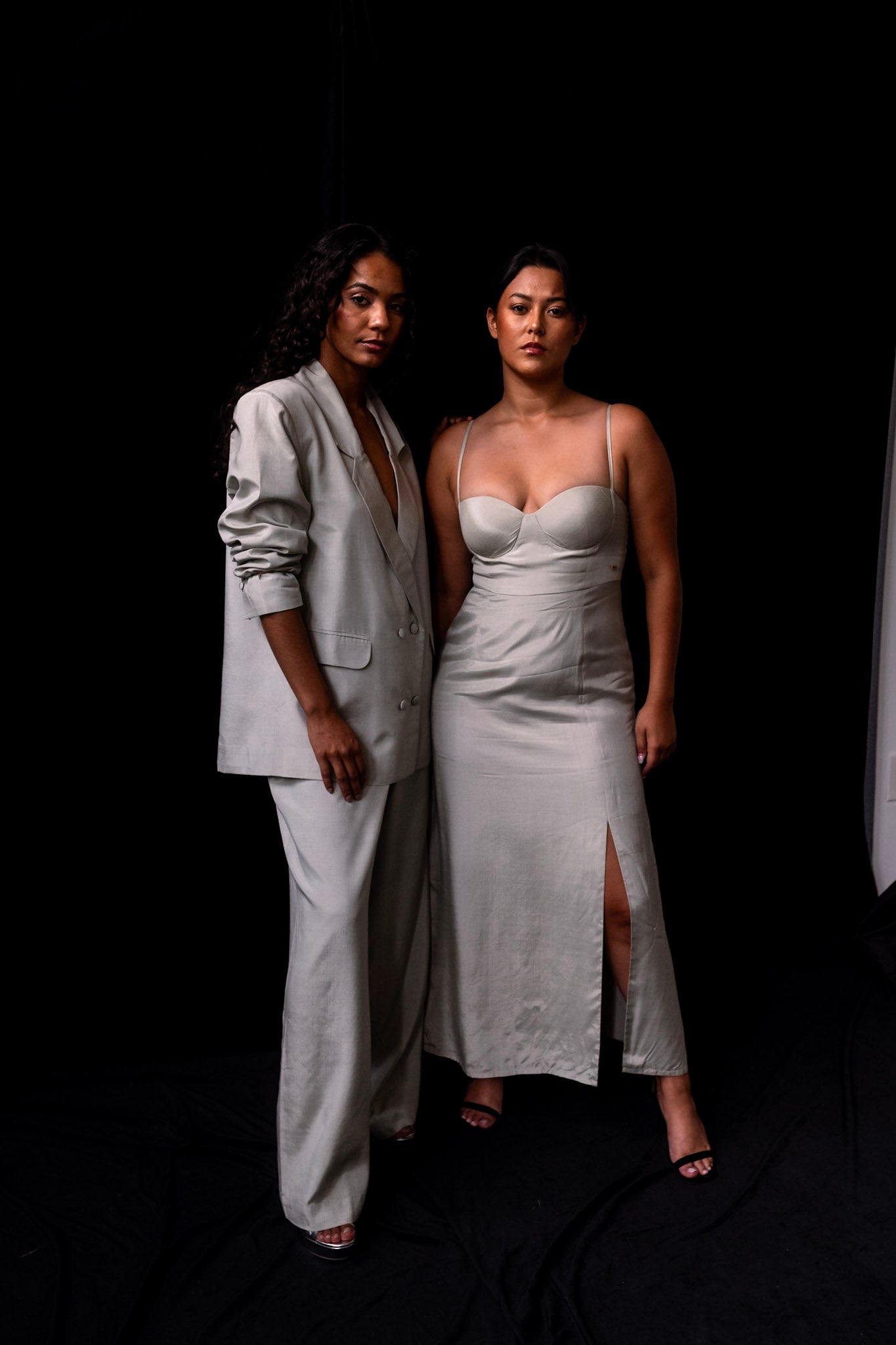 Also pictured: Silver Sage Trousers, Silver Sage Corset Dress, Ivory Brocade Mini Skirt