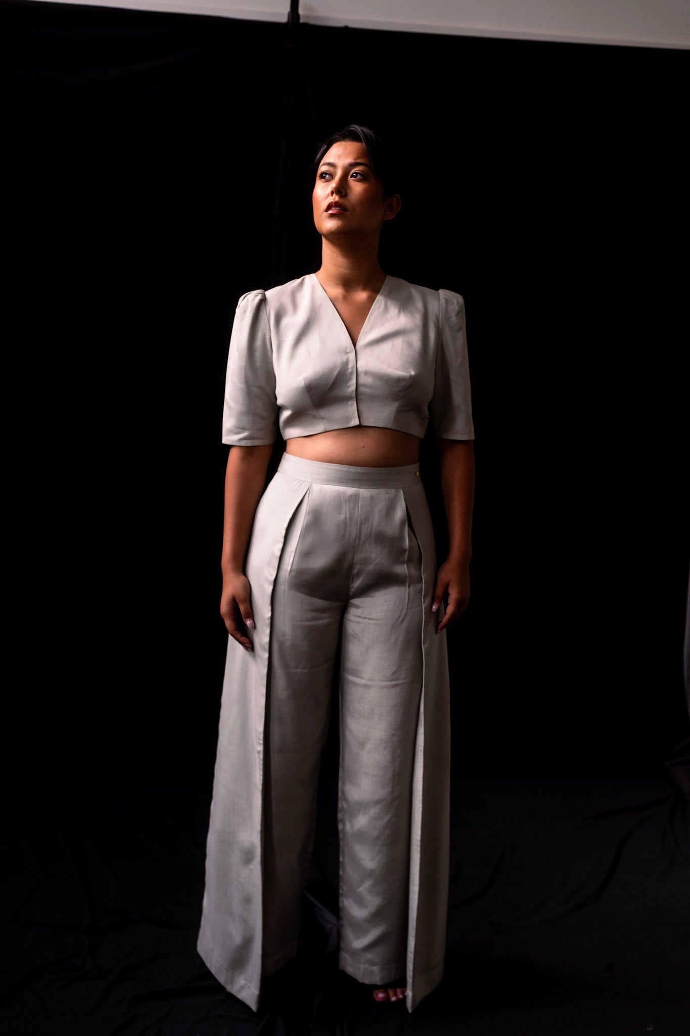 • Pairs beautifully with the Silver Save Overlap Trousers for a coordinated look